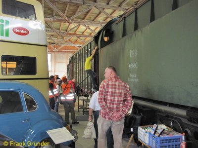 Bei der Öffnung der Nahverkehrshalle an den Septembersonntagen eines jeden Jahres erklärten wir neben dem Fahrbetrieb auch Exponate des Schienenverkehrs, wie z.B. die Dampfschneeschleuder der Bauart Henschel: