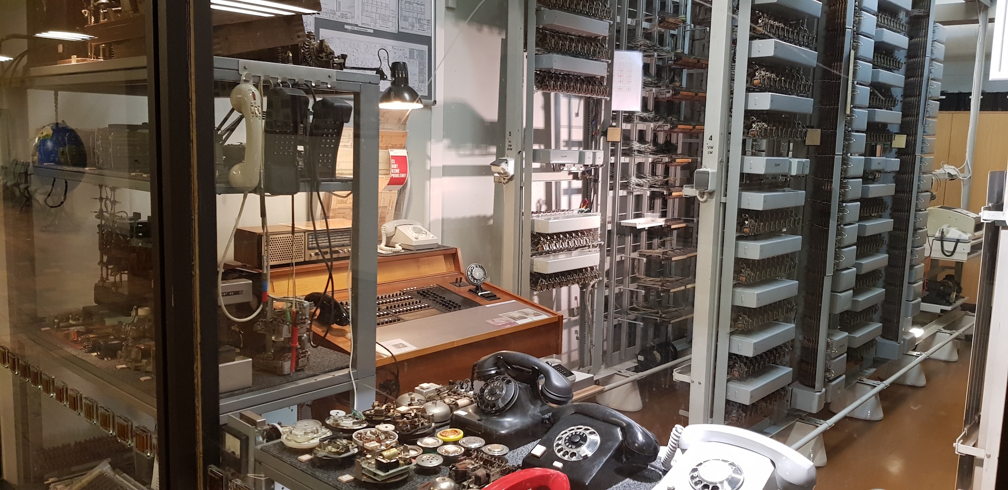 Weiterhin konnte eine umfangreiche Sammlung älterer Telefonapparate, die zu Zeiten der GWN aktuell waren, besichtigt werden. Viele unserer Kollegen kommen aus dem Bereich der Fernmeldetechnik und hatten mit ähnlichen Anlagen zu tun. So kam es hier im Anschluss an die Besichtigung zu einer sehr regen Fachsimpelei.