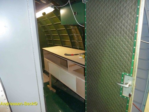 In der Dunkelkammer wurden während der Fotoflüge auf der Tischplatte die Filme gewechselt. Was sich genau in dem Schränkchen darunter befand, weiß keiner mehr.