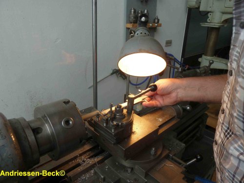 Mai 2016: Auch von den kleineren Teilen fertigen wir manche selber an. Hier werden Buchsen angefertigt, die für den Rumpf benötigt werden.