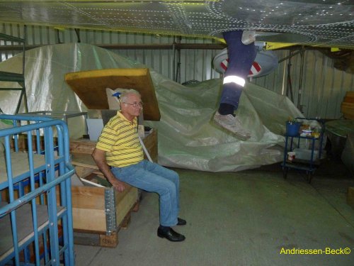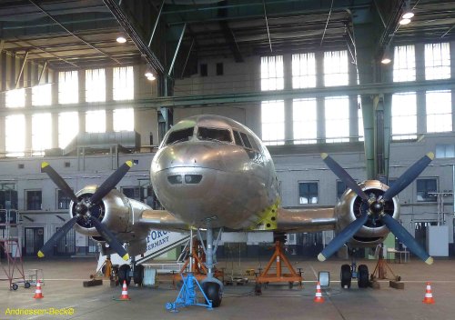 Dezember 2020: Hurra, unsere IL-14 ist wieder in einem Tempelhofer Hangar und steht auf ihren eigenen Rädern! Wir können in die Winter- und Corona-Pause gehen.