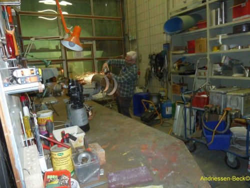 März 2020: Dieser Winter ist warm genug, wir arbeiten weiter an der IL-14. Die Abgasanlage wird überholt. Bleche und Schalldämpfer werden gereinigt und überarbeitet.