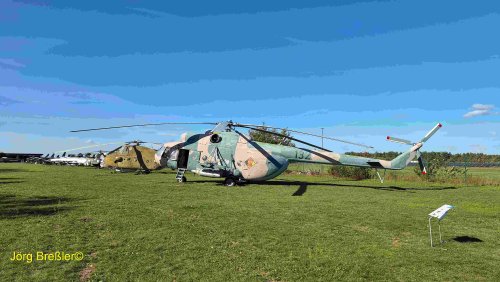 Der Eigentümer Dirk Schlöpping führte persönlich durch die beachtliche Sammlung, die er noch erweitern und besser präsentieren will. Leider müssen auch bei ihm die meisten Objekte im Freien stehen. Gezeigt werden vorwiegend militärische Luftfahrzeuge, Flugzeuge und Hubschrauber – aus Ost und West.