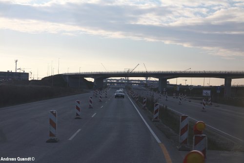 Auf der Zufahrt zum neuen Flughafengelände.