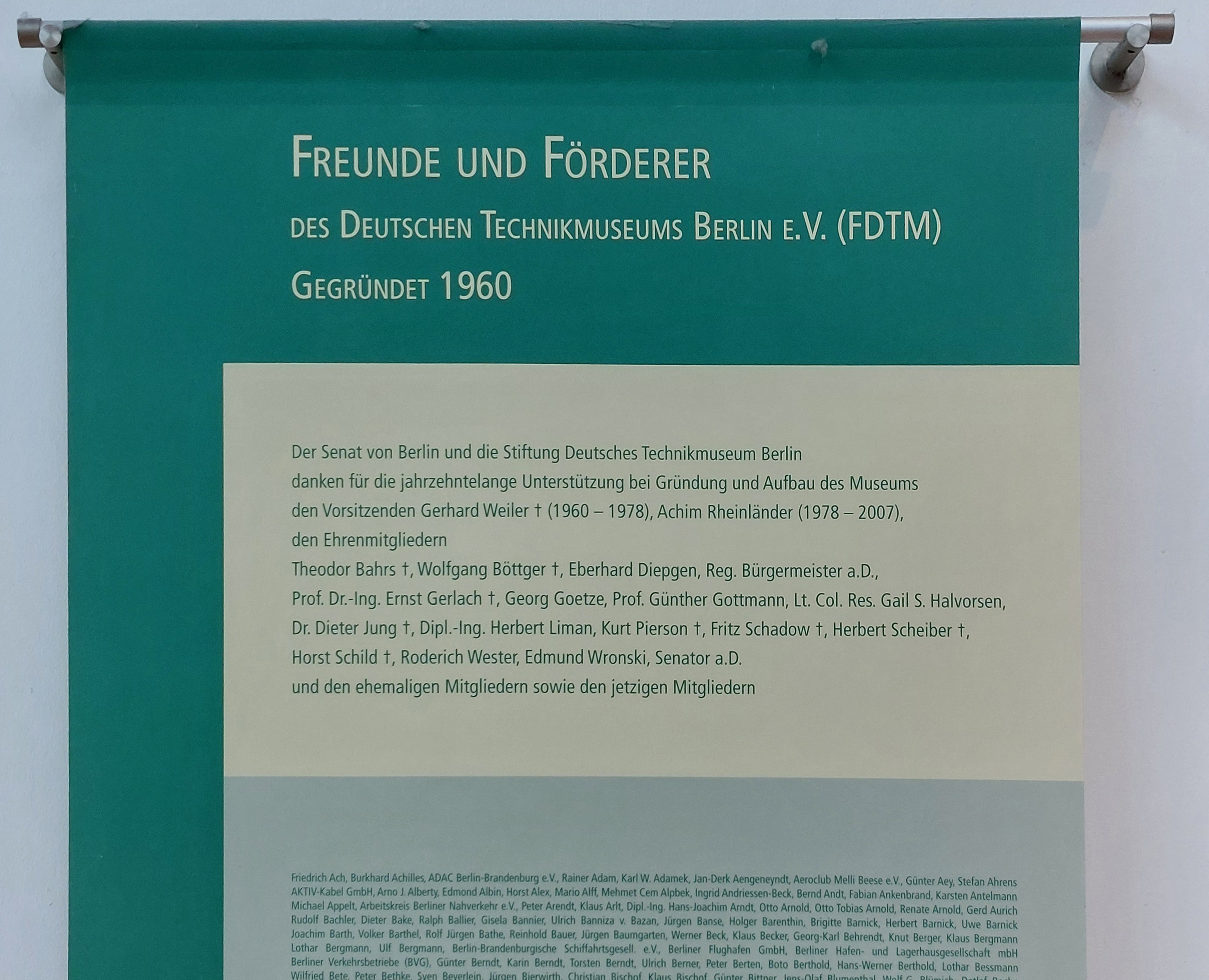 Im Foyer des Museum finden Sie die Ehrenfahne der Freunde und Förderer des Deutschen Technikmuseums Berlin e.V (Klick für größere Ansicht).:
