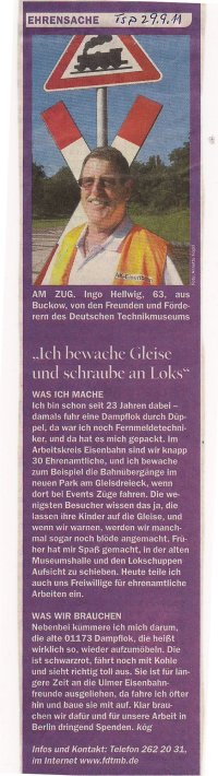 Interview mit dem Tagesspiegel „Ehrensache“ – Ingo Hellwig berichtet über die ehrenamtliche Arbeit im Förderverein bzw. im Deutschen Technikmuseum.